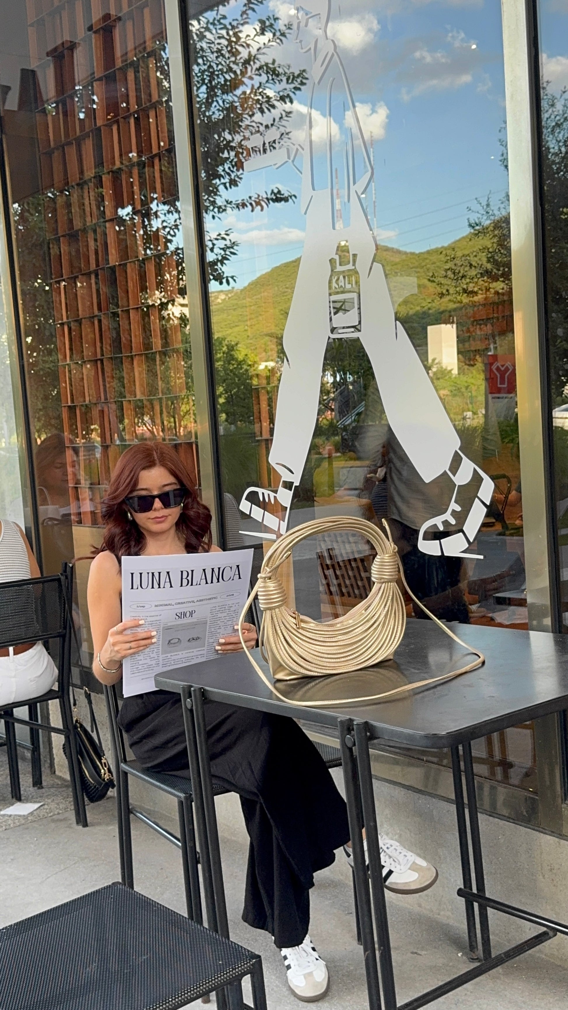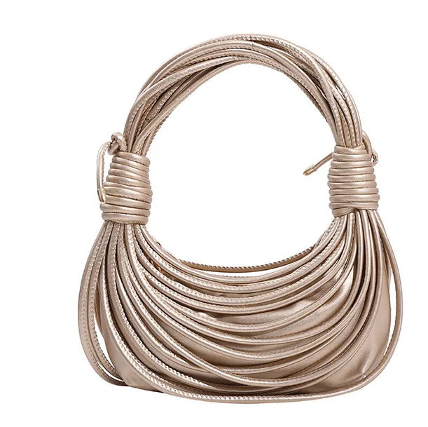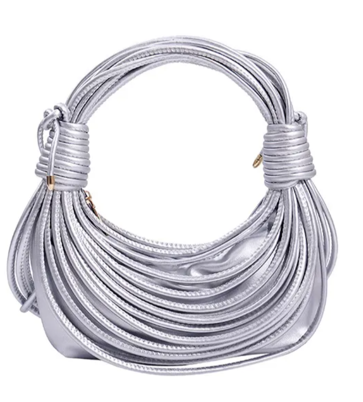 Bolso bandolera pequeño en cuero sintético, con diseño estructurado y detalles de nudos entrelazados. Sofisticado y femenino, ideal para darle un toque moderno a cualquier look en todas las temporadas