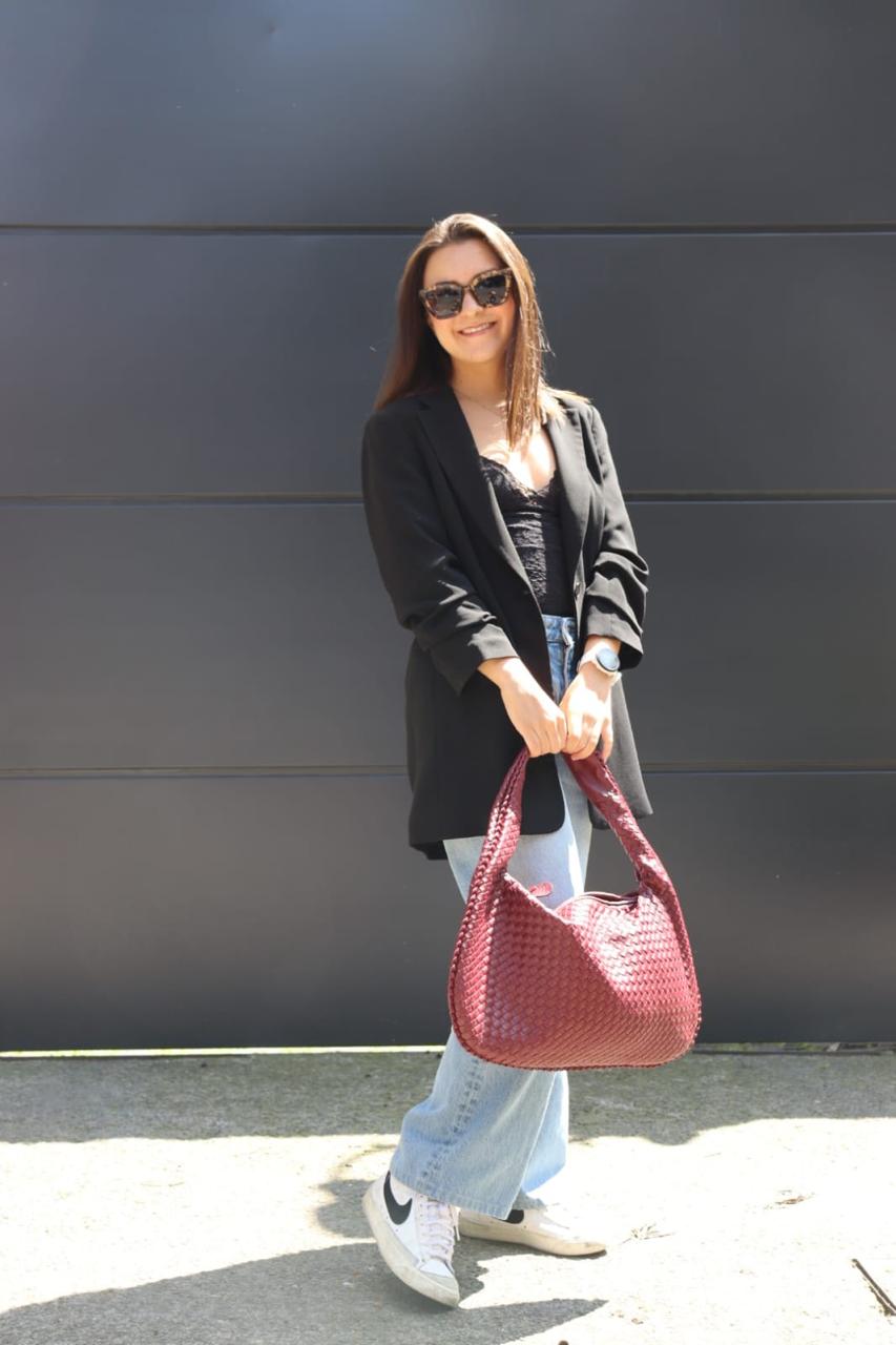 Diseño con textura trenzada que aporta un aire vintage y elegante. Confeccionada en material sorbete con forro de poliéster, es ligera (580 g), práctica y de tamaño medio. Su cierre de cremallera y correa de hombro individual la convierten en el accesorio perfecto para el día a día con un estilo sofisticado y atemporal.